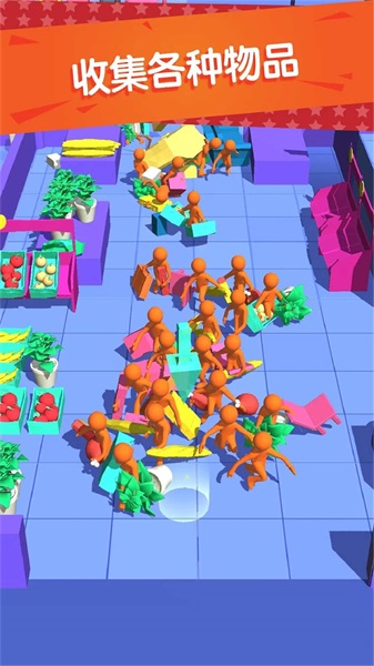 3. 这款游戏玩法颇为简单,你只需操控人群持续移动,从而获取更多商品。