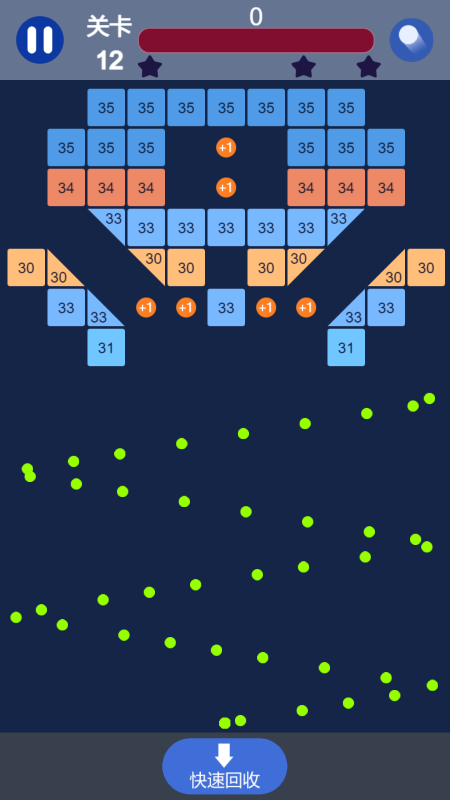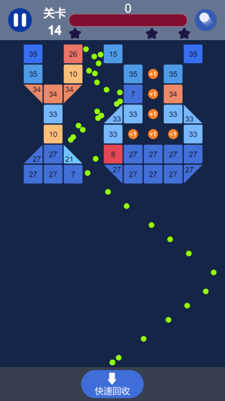 3. 发射出去的每一颗子弹都会发生反弹,只要运用得当,就能在短时间内清除屏幕上的所有方块。