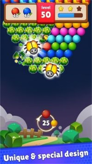 在这款游戏里,玩家能够与这些漂亮的泡泡并肩作战,它会为你带来诸多消除的欢乐。你得探寻更多消除诀窍,才能以最为简便的方式将它们全部消除。消除的泡泡数量越多,你所能获得的游戏分数与等级也就越高,从而让你的游戏体验更为圆满。