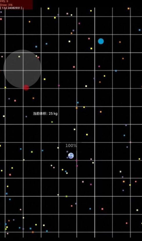 2、当把关卡里的所有圆球都吞噬殆尽,自身小球的体积便会逐渐增大。
