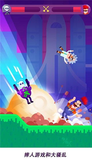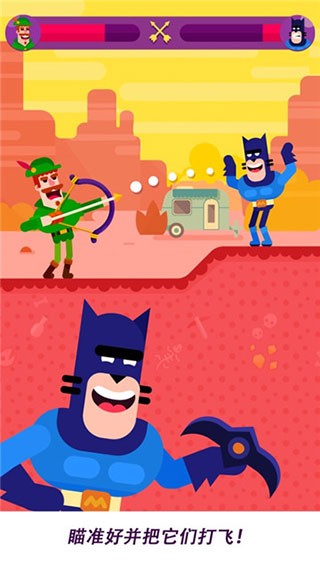 1、玩家可从大量角色与道具中挑选,每个角色和道具都具备独特能力。搭配各式各样的武器,精准瞄准,将敌人击飞。