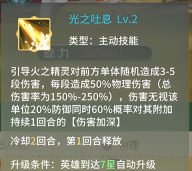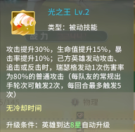 [光之气息]每层提升自身1.6%攻击力,在叠加至15层时发动1次[耀光打击];持续至战斗结束且不可驱散
