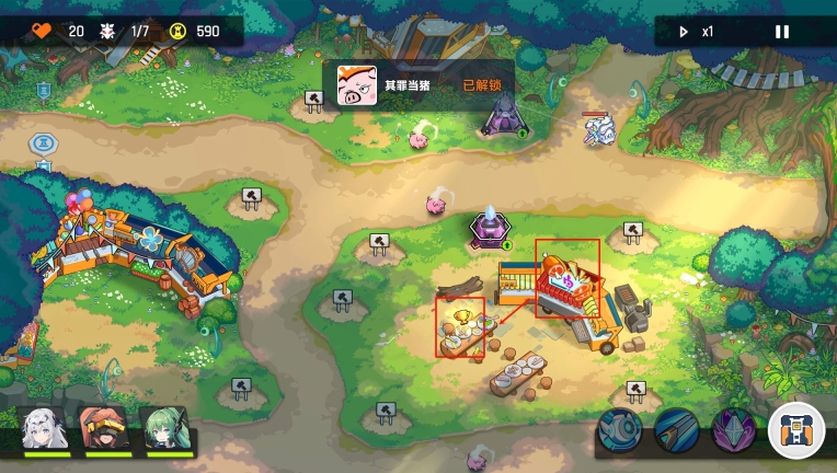 3 - 1:触发条件为点击地图中央的商店,当桌上食物被吃完后,角色可获得加成,能够连续领取3次BUFF 。在第四次触发时,会出现彩蛋,角色将在一段时间内变成猪(需在进入战斗后点击方可触发)。