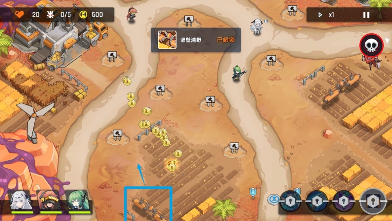1-7:地图右边牛仔,随机秒杀3只怪,建议留给最后一波大怪(未开局点不了)