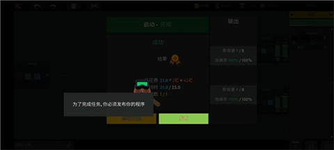 3、要是选对了颜色,点击测试就能推进任务流程,但只有发布你的程序,才算真正完成任务并获得钞票。