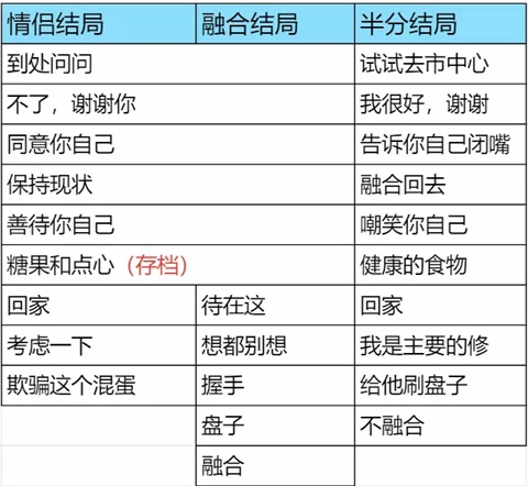 只有少数选择至关重要,像糖果相关的那个选项,修就会提出要和另一位修成婚。