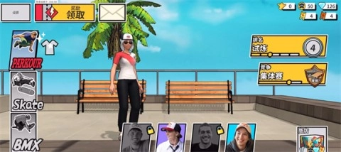 6、在主界面的左侧区域,你能够切换不同的玩法模式,当前系统支持跑酷、滑板以及自行车这三种挑战形式。