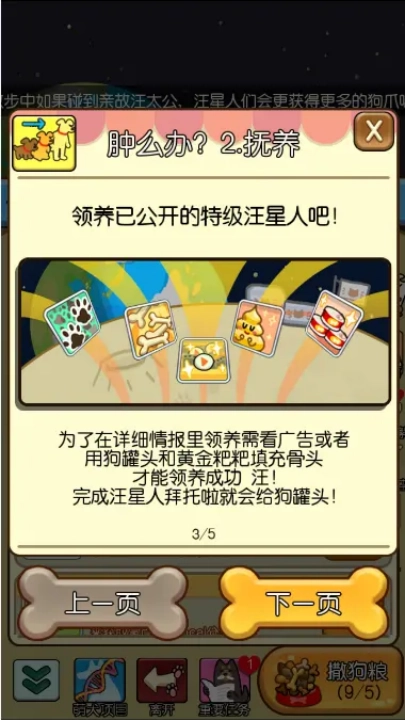 3、游戏内容丰富,玩家你可以在游戏里喂汪星人吃狗粮,带着它们散步,当然游戏里道具也是非常多,这些道具让游戏的可玩性变得更高,增加了许多趣味性。
