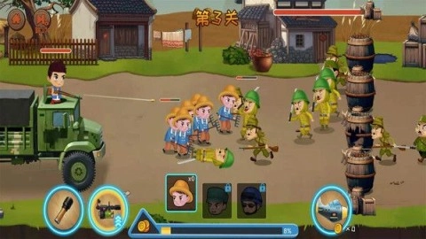 鬼子进村是一款充满趣味的休闲横版闯关游戏。当敌人袭来时,玩家得快速拿起武器和敌军对抗。村民们已经在前线战斗,你也能使用各种高科技武器进行突袭,以此削弱敌人的进攻,甚至把他们全部消灭!游戏里关卡很多,金币能随时收集,赶紧解锁更多民兵形象,开启你的战斗之旅吧!