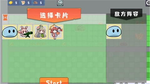 1、进入游戏场景后,玩家需要选择一张战斗卡牌。一旦选择,你可以点击屏幕底部的“开始”按钮开始游戏。