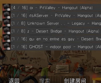 3、进入服务器加入他人的房间后,依然能够自行创建房间。