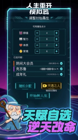 2、要选择多变的人生,玩法比较自由,随机分配属性看人生结果。