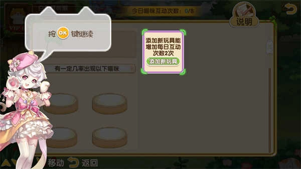 包括发条鼠、音乐盒、催情药剂、大甜甜圈、红辣椒等更多玩具,看看你能把多少种特殊技能教给你的名贵猫咪!