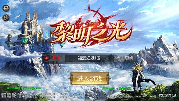 1、启动黎明之光应用,登录账号并选择对应的区服,随后点击进入游戏界面;