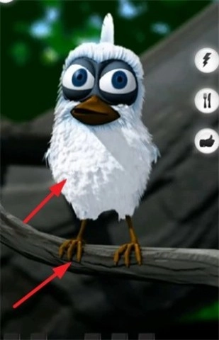 6、同时,点击小鸟的脚或肚子,它会有各种有趣的动作。
