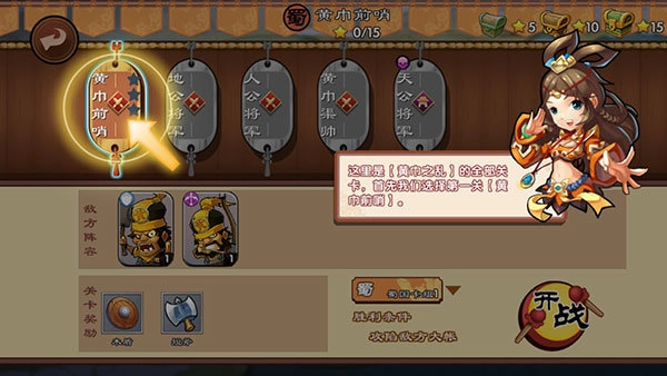 3、蜀国故事有十四个战役组成,让我们先从第一场战役黄巾之乱开始吧。