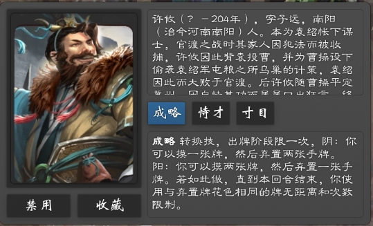 默认发动类技能标签。什么叫“默认”?就是说,正常情况下都会发动的技能。比如郭嘉天妒,除非判定牌是个毒,或者为了其他罕见需要,是个有脑子的人都会拿了这张判定牌。
