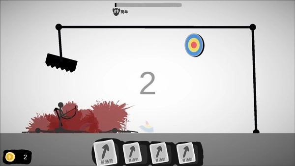 3、射偏惩罚规则:要是不小心射偏导致绳索被切断,火柴人一旦被砸中,游戏就会失败。