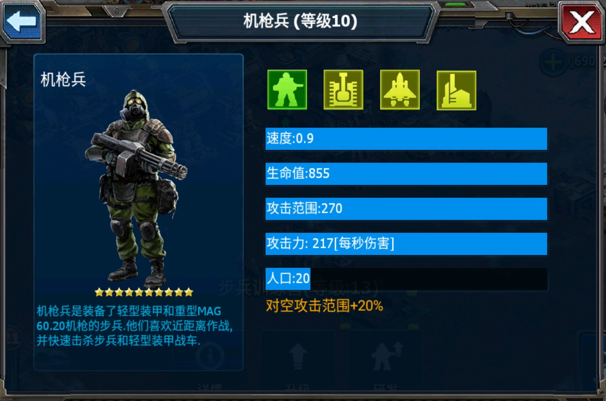 4、精英机枪兵(解锁精英兵种将取代原有机枪兵)