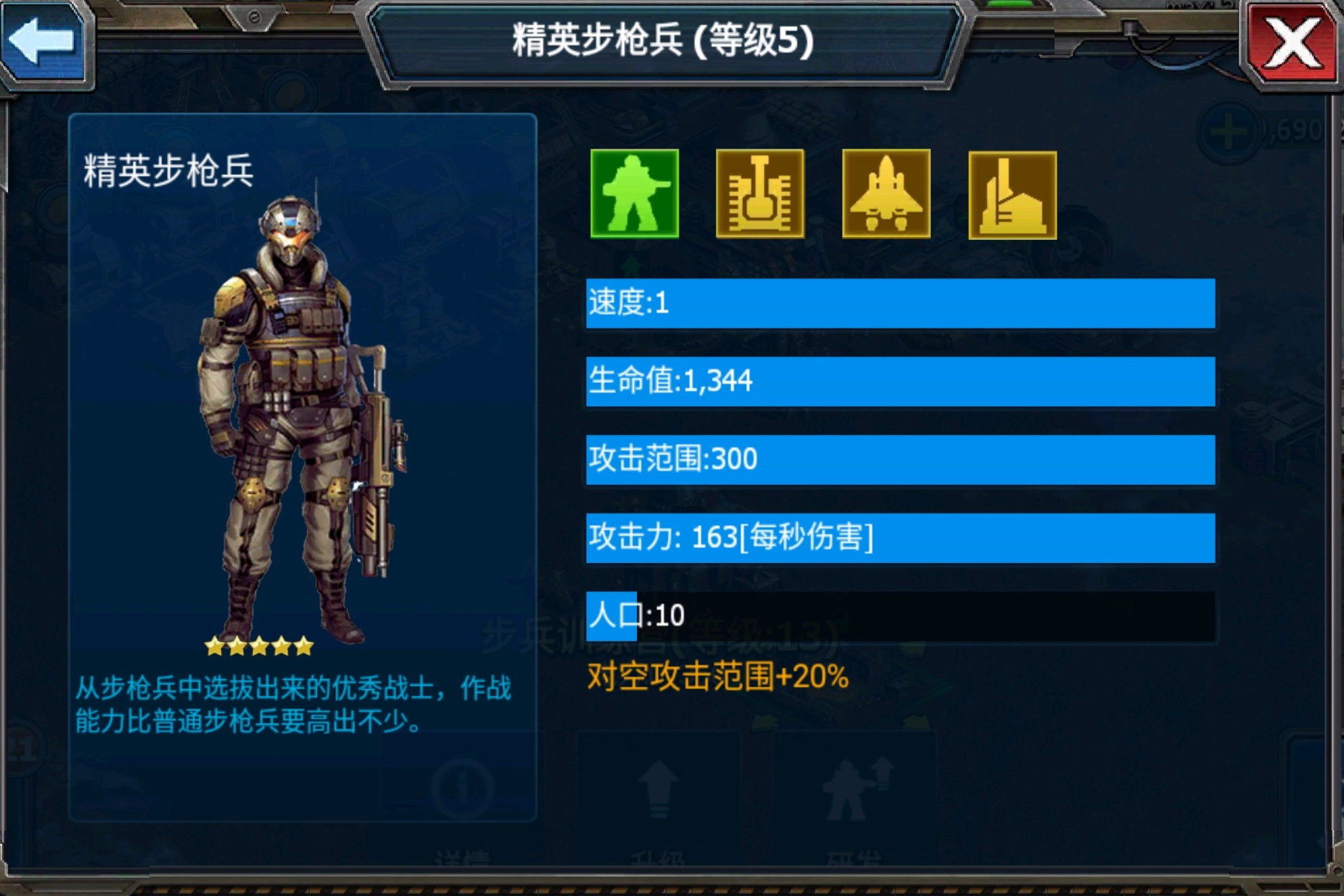 2、精英步枪兵 (解锁精英兵种将取代原有步枪兵)