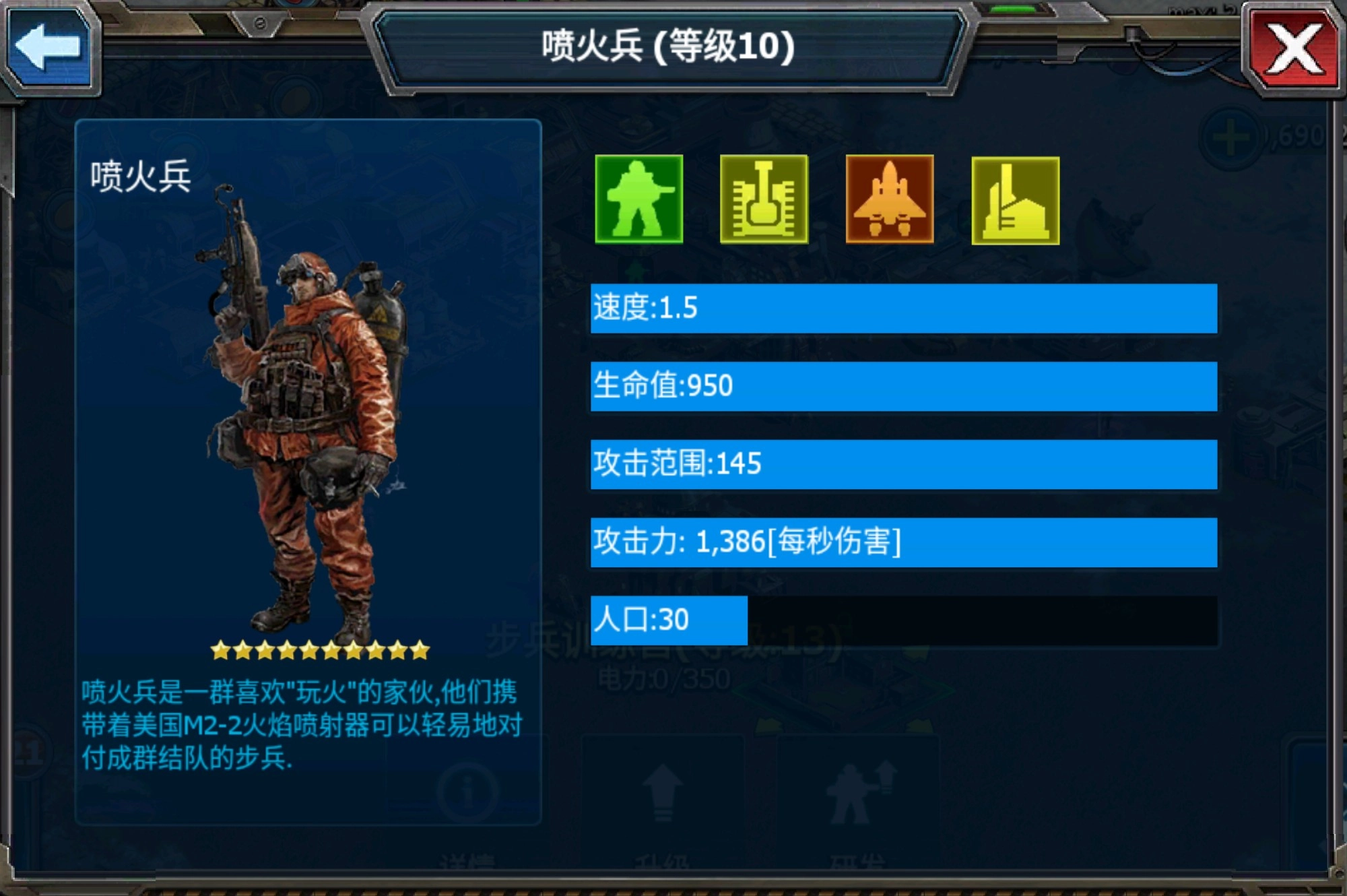 8、精英喷火兵(解锁精英兵种将取代原有喷火兵)