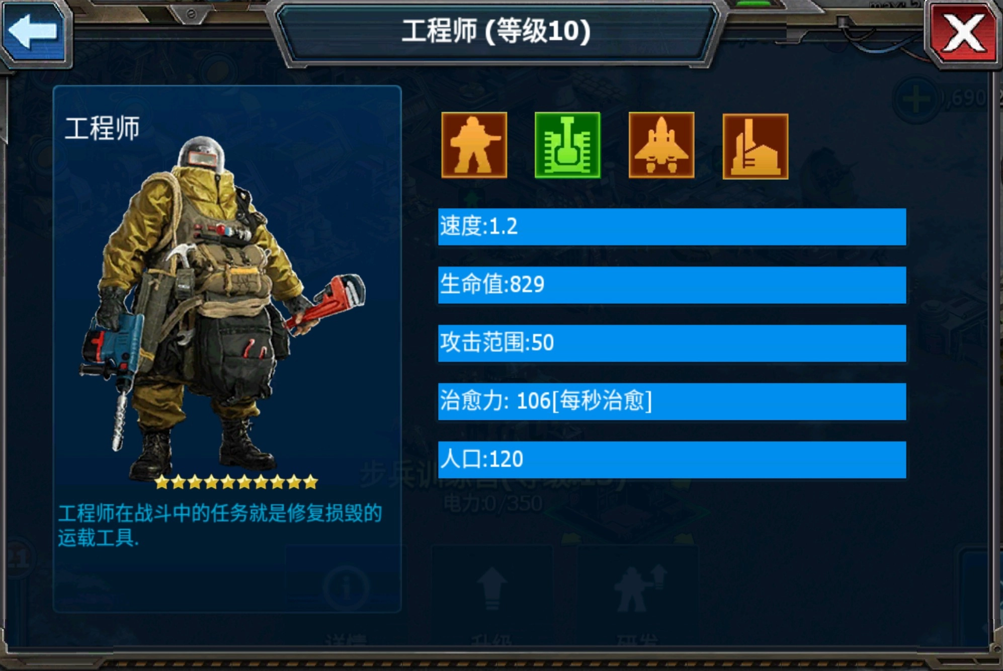 科技指步兵等级,飞机等级等。科技对于零氪新手玩家最主要作用就是提高英雄战斗力,在前期,科技也是零氪玩家提升英雄战斗力最快的手段!