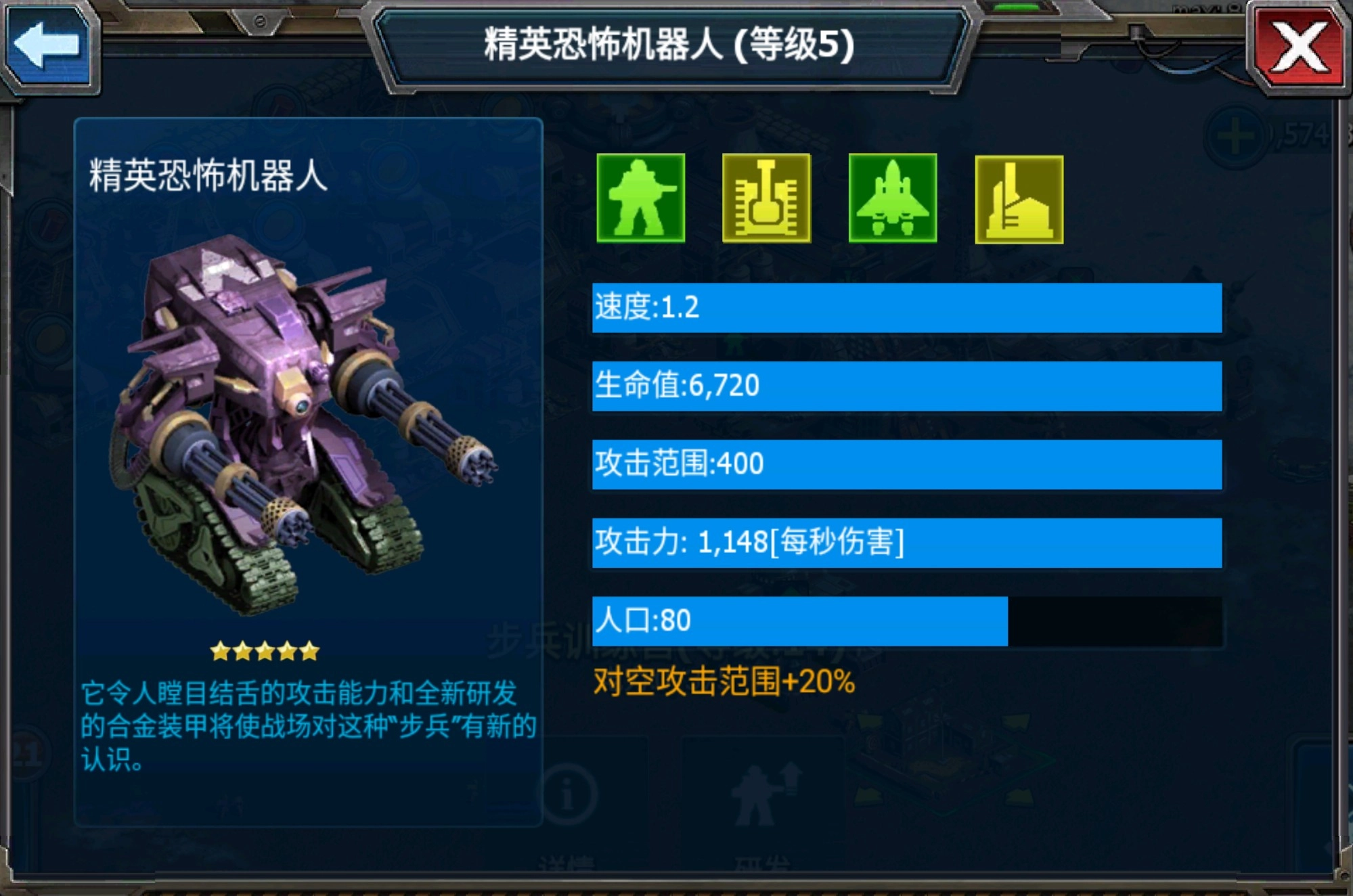 16、精英恐怖机器人(解锁该精英兵种后,将替代原有的恐怖机器人)