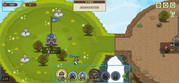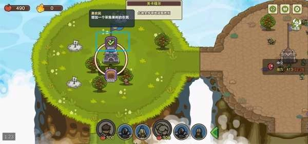 2、进入关卡后,双击城堡招募农民,优先安排他们采摘果树,为后续发展储备资源。