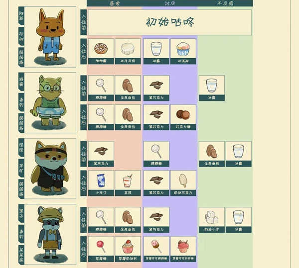供奉的食物,若无咕咚喜爱(或喜爱该食物的咕咚都已入住),则不反感该食物的咕咚随机到访一个。