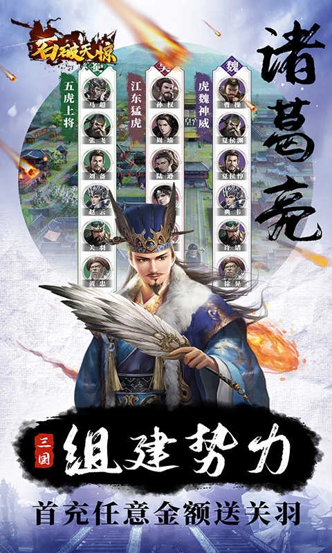 石破天惊三国游戏登录即赠最强武将赵云,玩家可在乱世三国中驰骋征战,体验多人竞技SLG游戏的独特魅力!全新国战玩法现已开启,更有多样创新元素融入其中,定能让各位玩家沉浸其中、欲罢不能!