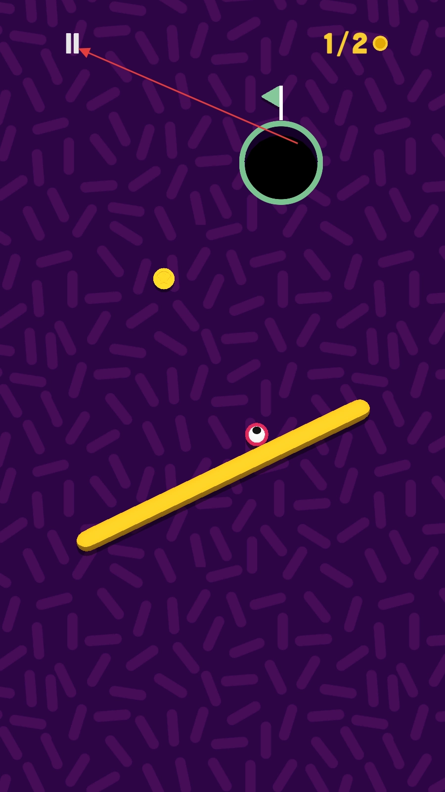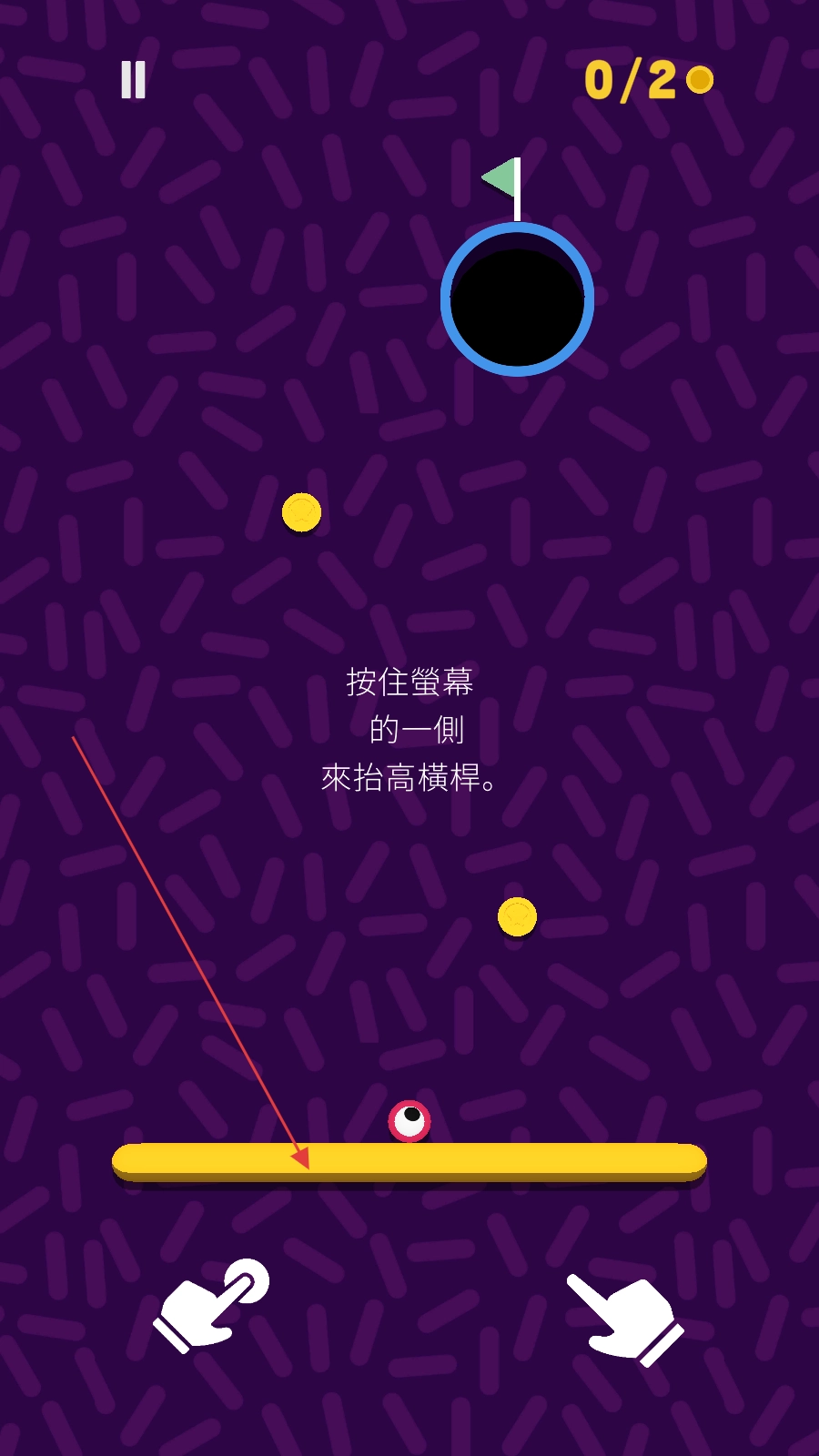 2、点击屏幕一侧抬起横杆,引导小球收集金币,并瞄准洞口。