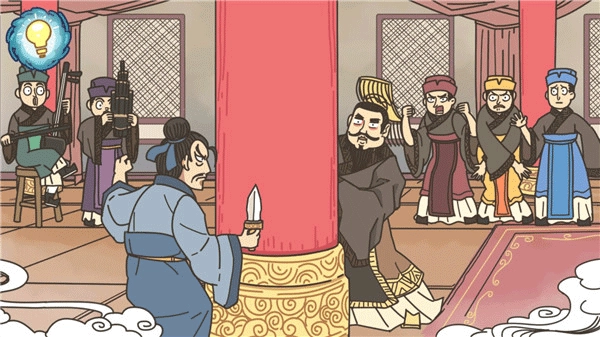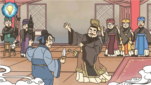 秦王会爬到红柱子上跳一段钢管舞,接着给荆轲一巴掌,这样就能通关了。这是第二个通关方法。