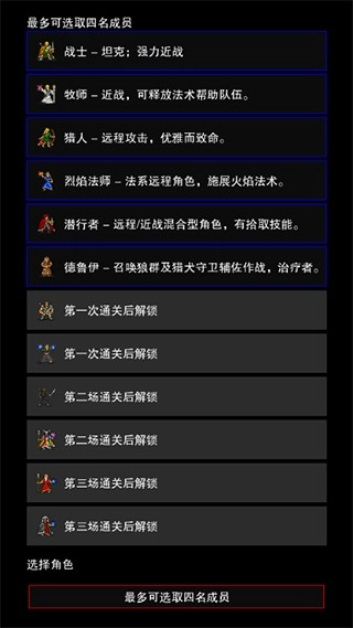 3、每个角色技能独特,如德鲁伊擅长召唤,牧师可治疗,可根据战斗需求合理搭配。