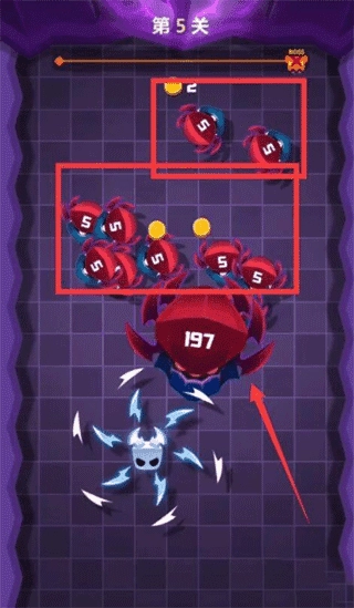 5、第5关攻击BOSS时,它会分裂出小怪物,所以我们要优先击杀BOSS,不用理会那些小怪物。