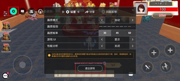 10、点击左上角的设置可以退出地图或者进行地图切换调整帧率画质等操作。