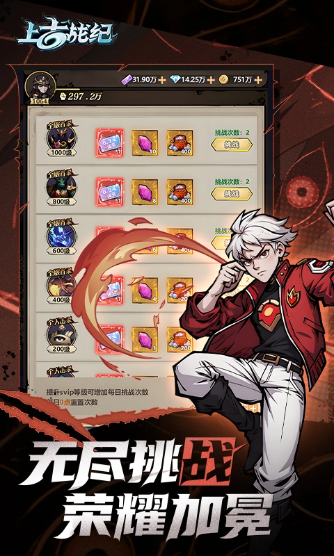 上古战纪为玩家呈现精彩唯美的养鲲仙侠世界,踏入这片仙侠天地,完成任务就能解锁满级VIP,各类顶级神装轻松入手,还有丰富多样的精彩活动与副本等你来参与,随时可以组队投身精彩战斗,培育心仪的异兽,开启专属于你的仙侠冒险之旅。