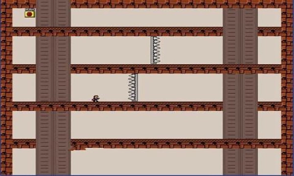 到后面赶紧逃跑,接着抵达一个由四块砖块组成的所谓“炮台”。要通过在“炮台”上跳跃来攻击它,攻击的时机是它张嘴攻击玩家的时候——一边躲避它的火球,一边攻击它的嘴。它总共会移动三次,移动时会变成一些奇怪的形态,躲开就行。三次移动后,又要开始大逃亡了,得抓紧时间,在左下角那块砖块上做好逃跑准备,等它撞到墙后就能通过了。