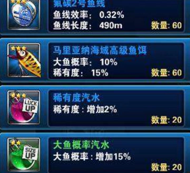 7、强化水可增加合成几率,获取途径为:野生鱼、每周公会商店、个人战1、2名、活动、商城购买礼包(贵的离谱)。