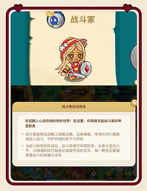1、战斗家具备战略远见与运筹能力,能带领伙伴们无畏投身战斗,守护农场的安宁与祥和。