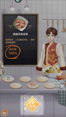 1、进入游戏后,挑选好店铺,接着选择并点击开始烹饪。