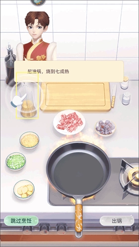 2、在这里按顺序加入作料等食材后稍作等待,就可以选择并点击“出锅”选项了。