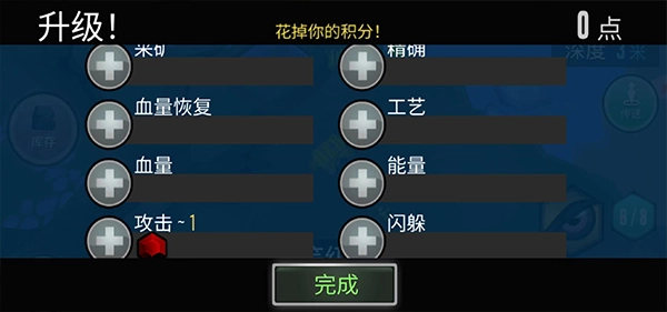 6、攻击地图上的每一种东西都会获得经验升级,每提升一级都可以升级一个属性,这个属性加点不固定,可以根据自己所需来;