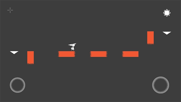 游戏的操作逻辑十分清晰:玩家需要通过切换游戏世界的主色调来操控角色跳跃前进。当切换至某一种颜色时,由另一种颜色组成的道具便会暂时消失,只有异色的部分会保留下来。相应地,场景中的各类构件也会随着红黑状态的切换,呈现出不同的通行特性。