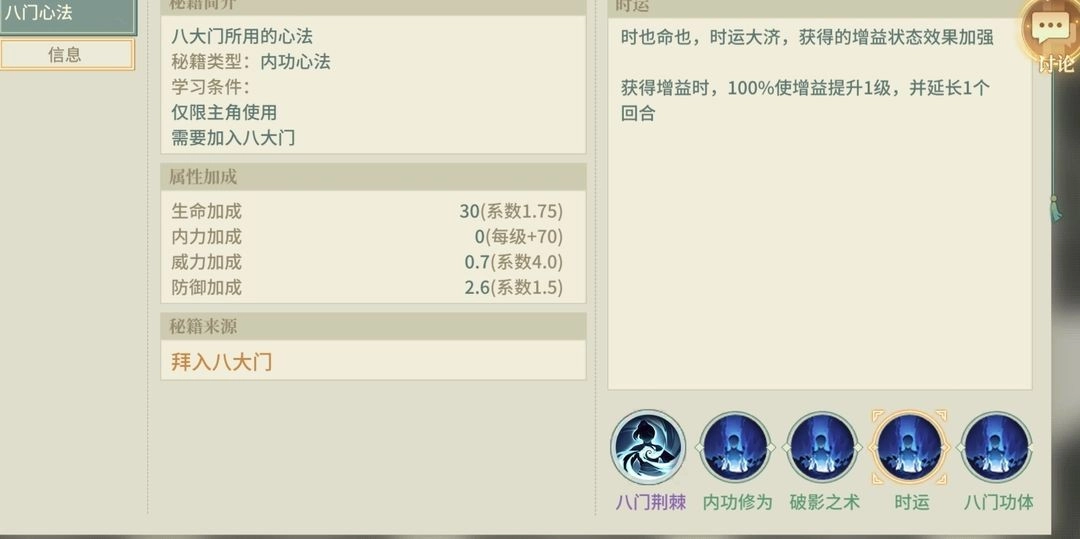 剩下的两个武学看自己资源,带参研后能加生命的。资源高的,直接抄巫教秘阵那个炸盾即可。我没带也稳定打过了。