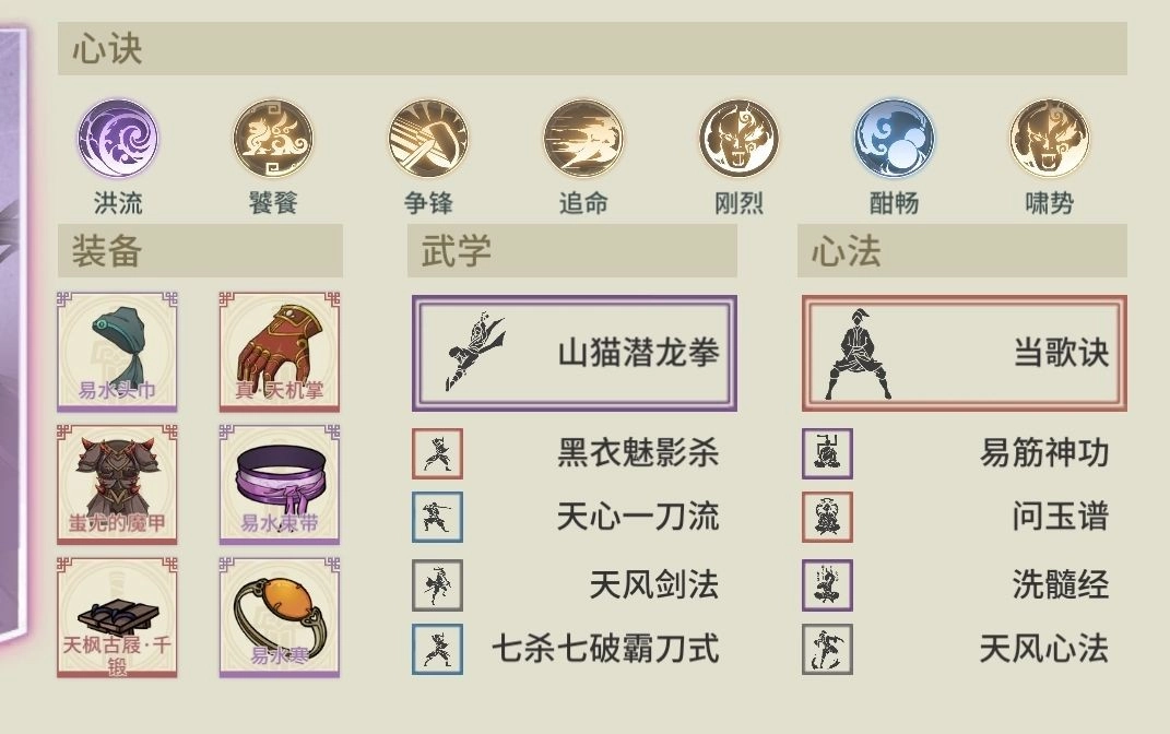 第二步:心诀升级争锋>洪流>饕餮>追命,酣畅>刚烈,桃花