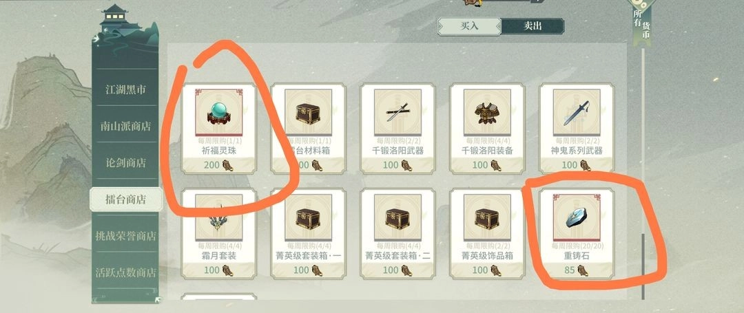 江湖黑市:江湖贡献优先买武学,然后清空武学后,每天必买三个挑战券