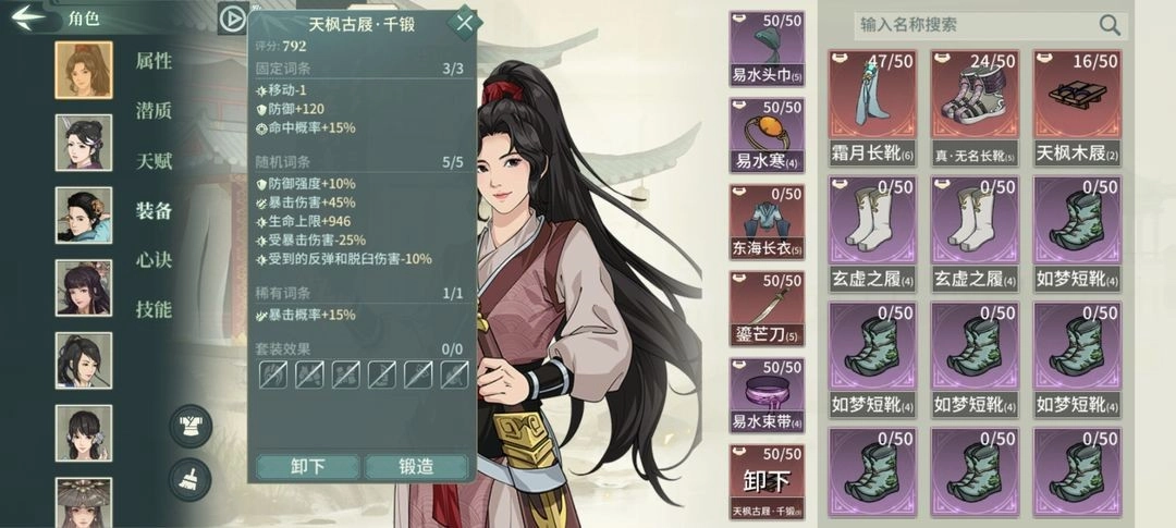 考虑到当前《汉家江湖》的游戏阶段,活动副本与兑换商城中60级装备(萌新前期建议优先兑换)的获取途径较为充足。除了走青阳套爆伤路线的天工“炸弹人”外,其他剑意流派搭配赤卫套装会更合适。前期获得的重铸石不宜过多使用,尤其是不建议用在临时过渡装备或稀有度尚未满星的装备上。