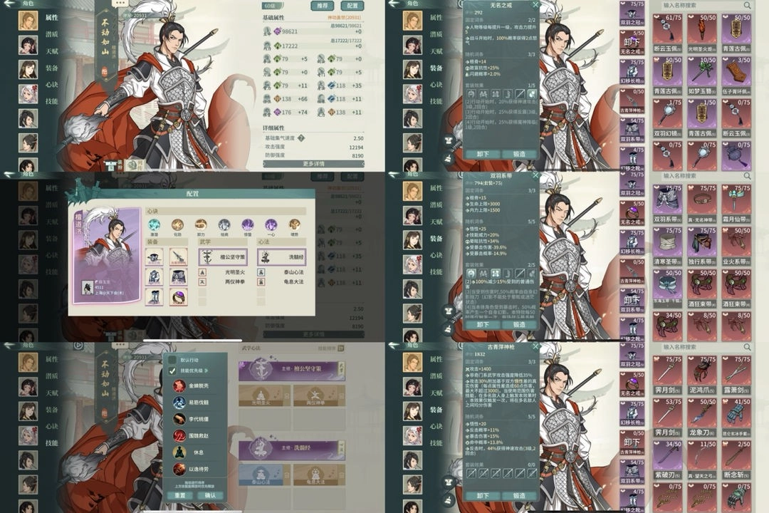 我见过太多的萌新喜欢改配置,抄配置抄一半,或者东拼西凑,这里我为了防止这种情况,只展示了南山派最最最基础的,所有人都能集齐的配置,除非你觉得自己的理解到位了,否则请不要有一点改动(其他门派配置不展示是因为萌新太喜欢乱改了,想获取可以进群交流,在tap搜"干不了谢谢"进群)