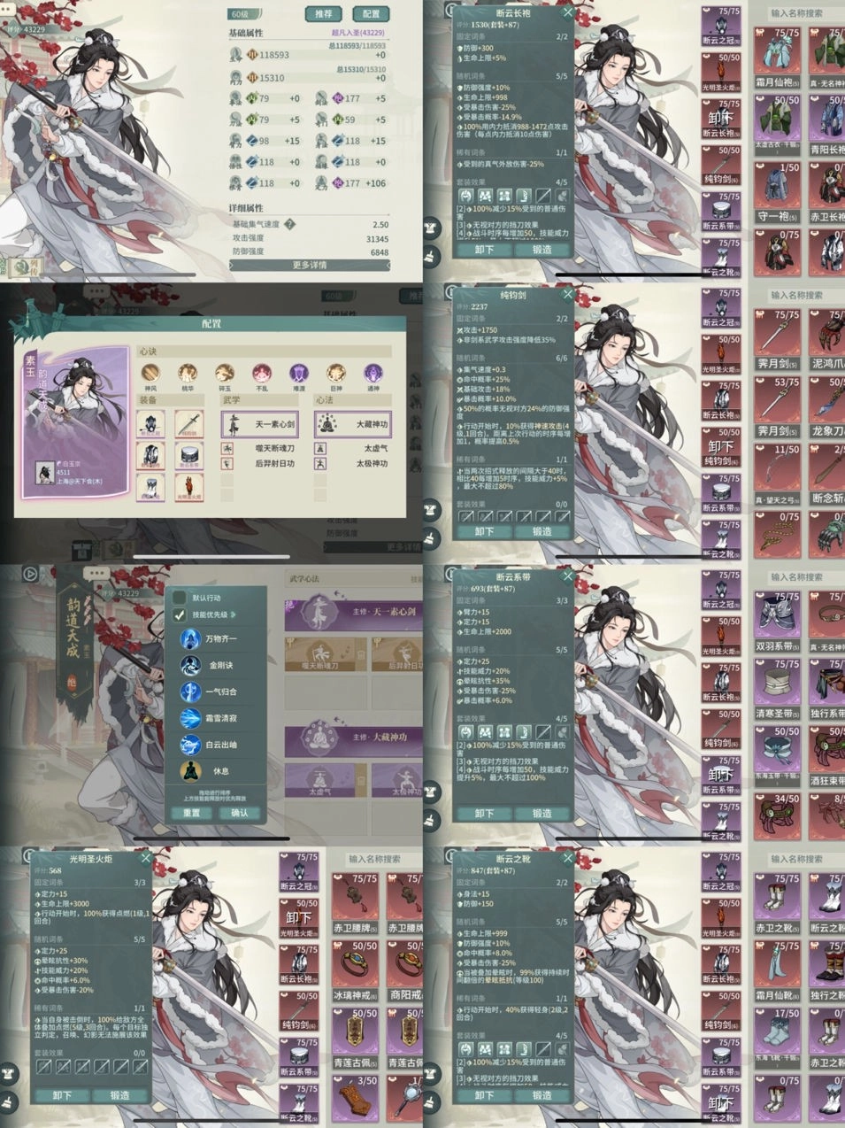 这套配置主要强在能遏制遁甲刀魔恒山,偶尔出现的恒山剑阵略微麻烦,适时BP逮捕(唐婉巫锦盾月和琴)。