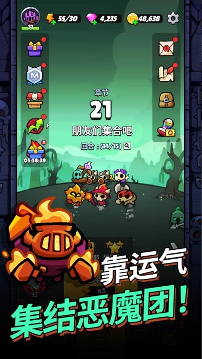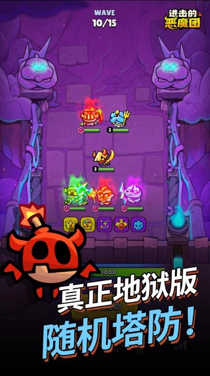 3、难度不断提升,强化自己的恶魔团队,享受到独特的闯关塔防战斗乐趣